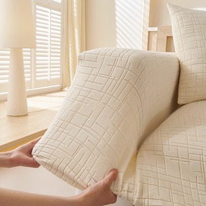 クリームスタイルの猫傷防止弾性保護カバー、オールインクルーシブユニバーサルカバー、オールシーズン対応のユニバーサル滑り止め怠惰な3人用ソファカバー