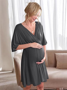 カスタムメイドマタニティドレス夏のマタニティドレス A ラインベルト半袖 V ネックドレス産前産後