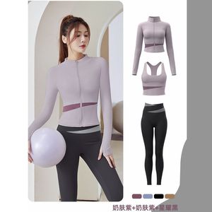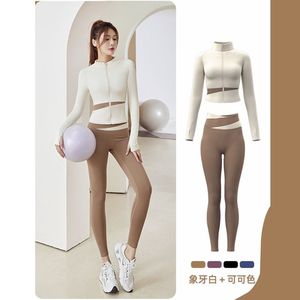 女性のためのヨガ服 2025 春と夏の新しい長袖スポーツフィットネスピラティストレーニングジャケットトップランニングスーツ