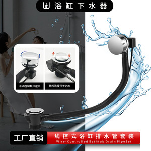 黒いプラスチックの浴槽排水ハンドホイール回転式ワイヤー制御一体型排水ダブルヘッド一体型排水アクセサリー
