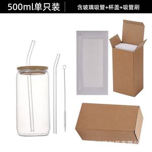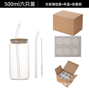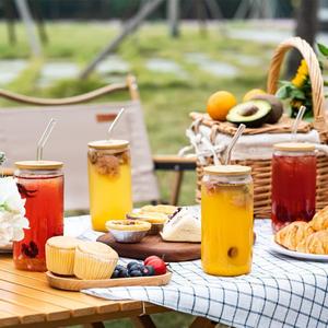 跨境亚马逊高硼硅玻璃竹盖吸管杯水杯16oz可乐杯梅森杯果汁饮料杯