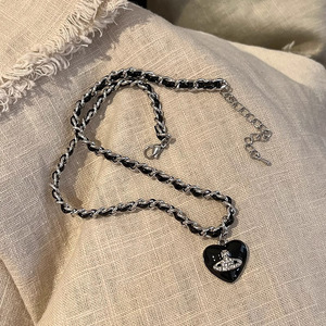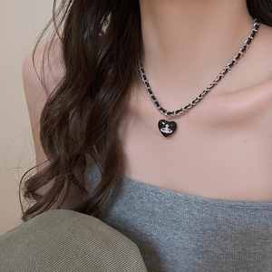 ブラックラブスターペンダントネックレス、フェミニンな編組レザーロープ鎖骨チェーン、ファッショナブルで甘くてクールなホットガールネックレス