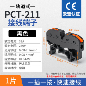 PCT-211 ガイドレール端子台 - 黒 - 1 個