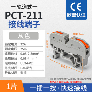 PCT-211 ガイドレール端子台 - グレー - 1 個