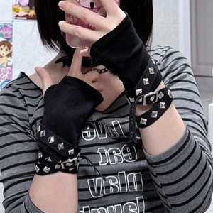 パンクハーフフィンガーリベットグローブダークアビ外国貿易人気原宿日本 Y2K 音楽祭ストリートダンスグローブ