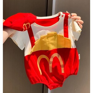 ベビー服、夏用薄手半袖新生児男女ベビー服、偽ツーピース三角ハーレム服、お出かけ用おむつ服