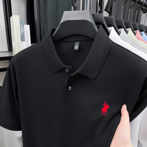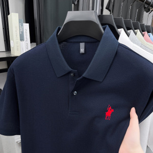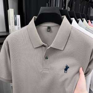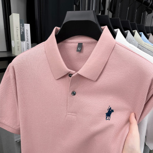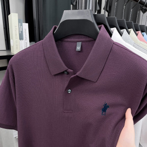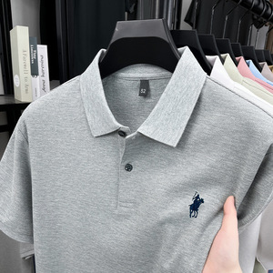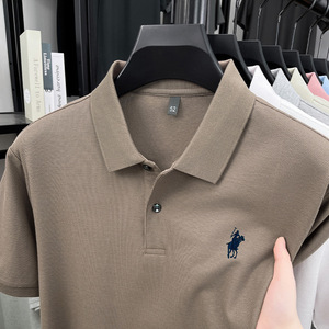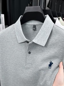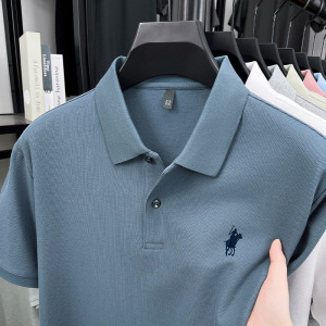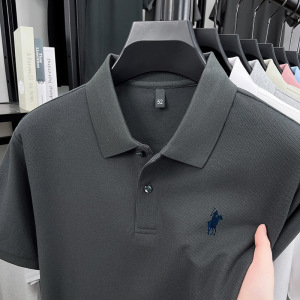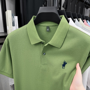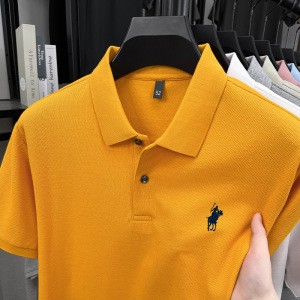 夏シルケットコットンポロシャツメンズラペルヘビーソリッドカラー半袖Tシャツカジュアル半袖Tシャツ2025夏の新スタイル