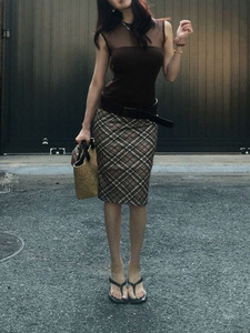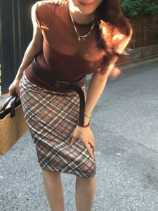 Wid Kwi チェック柄スカート レディース 夏新作 レトロ スリムフィット ミドル丈 ヒップカバースカート