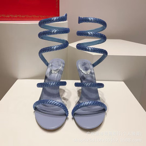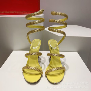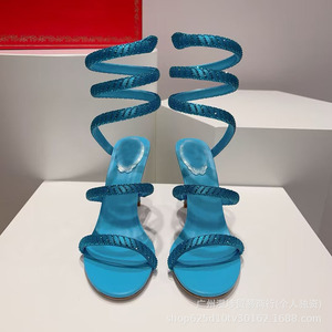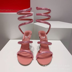 外贸糖果色圆头细跟露趾水钻蛇形缠绕百搭外穿高跟跨境欧美风新款