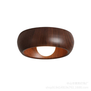 通路の天井ランプ、モダンでシンプルな玄関ホールランプ、ミニマリストのラウンドクリエイティブレトロウォールナットカラーバルコニー廊下ランプ