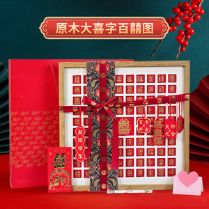 百福図DIYウェディング装飾、親友への贈り物、立体的な「喜」の文字を書いた百福図、お祝いの壁掛け絵画、フォトフレーム卸売