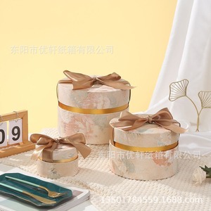 ヨーロッパとアメリカの油絵スタイルのポータブルギフトボックス、花婿の付添人、ブライズメイド、ギフトボックス、結婚式のお祝いハグバケツ、丸い箱、空箱