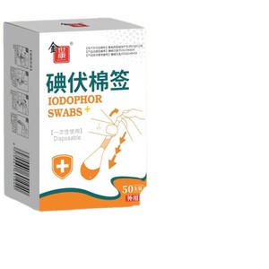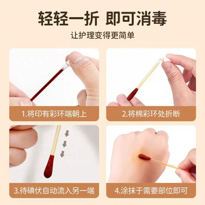 医療用ヨードフォア綿棒 50本入 使い捨て衛生双頭折れ滅菌個別包装 消毒綿棒ケア