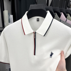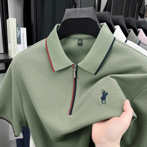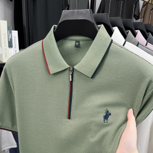 メンズ夏の新スタイルハーフジップファッションカラーブロック刺繍メンズポロ半袖若者と中年ハイエンド韓国カジュアルT