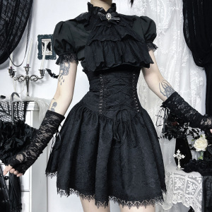 CF25117 ダークゴシックスリムレースチュニックスカート 2025 新しいロリータレースストラップスカート