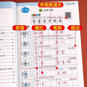 小学生向け中国語習字ステッカー 123456 年級上下巻 人民教育出版教科書 同期コピーブック 赤本