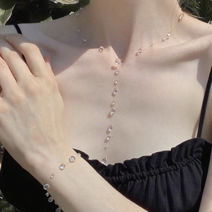 透明な露滴タッセルネックレス