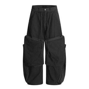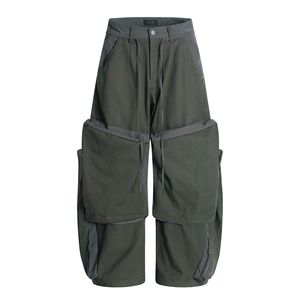 11KN アメリカンレトロコットンオーバーオールワイドレッグルーズシミターカジュアルストリートマルチポケットシルエットカジュアルパンツ
