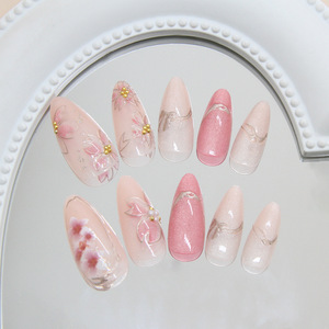 立体的なキャットアイ金箔の花、白くて甘くて多用途なミディアムレングスのアーモンドネイル、ヨーロッパとアメリカンスタイルの取り外し可能なマニキュア、24個