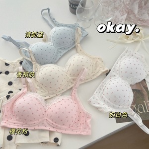 女の子の花柄下着、女性の小さな胸のプッシュアップ、ノンワイヤー、副胸縮小、たるみ防止学生ブラジャー、クリームブルー