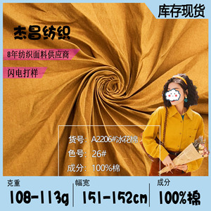 A2206#108-113 グラムアイスフラワーコットン夏涼しい通気性ソフトコットン平織りクレープ織りシャツドレス生地