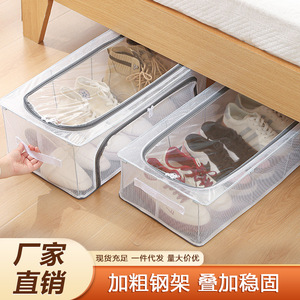 PVC透明シューズ収納ボックス、折りたたみ式シューズボックス、防塵防湿、厚鋼製フレーム、ベッド下収納ボックス