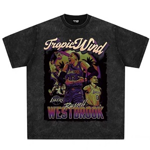 クロスボーダーウォッシュ加工古い油絵半袖Tシャツメンズ夏のトレンディなヒップホップTシャツアメリカンレトロトレンディな服