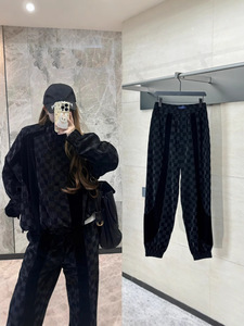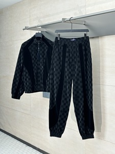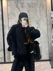 天井品質25SVチェッカーボード柄文字入り植毛ジャカードジャケットスーツパンツ男女兼用香港風トレンド