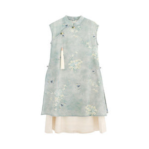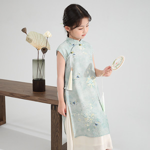 新しい中国風の女の子のチャイナドレス改良版漢服中国風の夏の子供用偽ツーピースドレスシフォンスカート