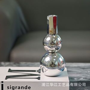 ヨーロッパのライト高級シルバーひょうたん型クリスタル燭台装飾品モダンなシンプルなモデルルームの家の装飾