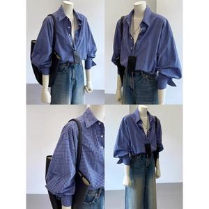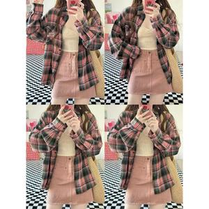 2025 夏薄い日焼け止めチェック柄シャツ女性のためのルーズカジュアル長袖シャツカーディガントレンディなアウターウェア