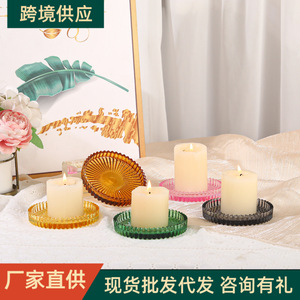 シンプルな耐熱性と断熱性の縦縞ガラス燭台、多機能の縞模様のガラストレイ、マルチカラーオプション