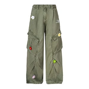 男性と女性のレトロな怠惰な花びらワイドレッグパンツクリエイティブウォッシュワークウェアトレンディなルーズアメリカンスタイルレタージーンズ刺繍