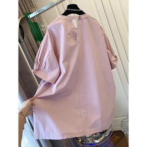 ファッショナブルでユニークで超見栄えの良いフレンチパフスリーブ半袖シャツドレスルーズビッグバージョントップ女性の夏の新しいスタイル