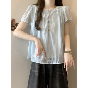 夏の新しいフレンチスタイルのルーズ、甘い、新鮮でファッショナブルなトップス、ベビードールシャツ、女性用無地半袖シャツ