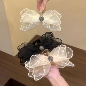フレンチスタイルのレースリボンヘアピン2025新しいハイエンド後頭部ハーフタイヘアピンヘアアクセサリー女性用