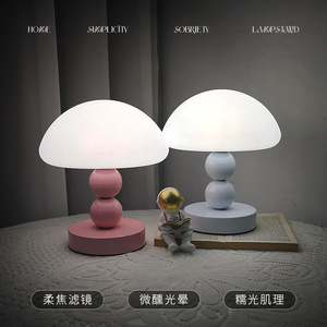 フレンチクリームスタイルテーブルランプムランアンティークスタイルベッドルームベッドサイドランプ北欧暖かい目の保護キノコランプハイエンド