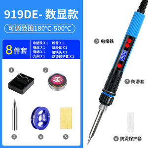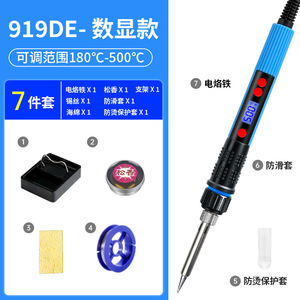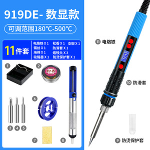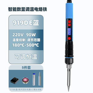 919DE (ブルー) + ベークライトブラケット + ロジン + バレル錫線 x 2 + 5 パックノズル + はんだ吸引器