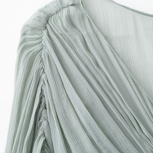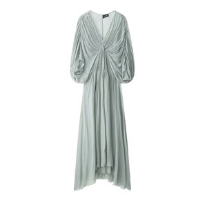 ZR 外国貿易卸売ヨーロッパとアメリカンスタイルの女性のファッション気質 V ネックプリーツ非対称ロングドレス 2954285
