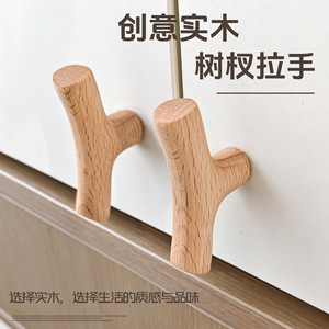 無垢材クリエイティブ木の枝ハンドルキャビネット木製ハンドルワードローブ引き出しブナ材ブラックウォールナット木製ハンドル