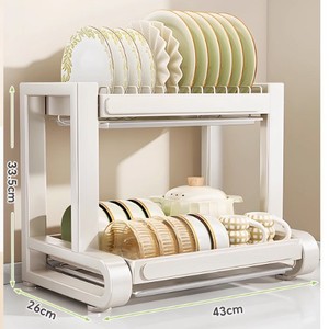 乳白カウンタートップディッシュラック 2段 43cm+フック4個