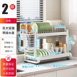 マットホワイト カウンタートップディッシュラック 2段 55cm + 包丁・箸ホルダー + フック4個