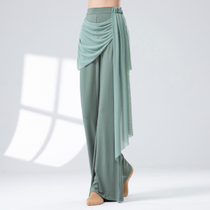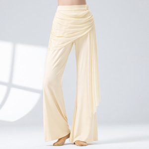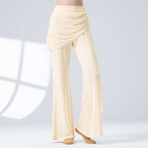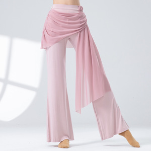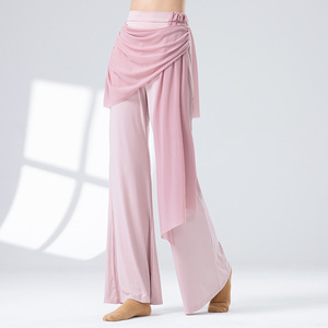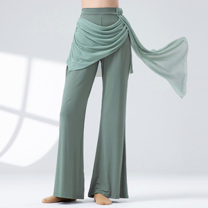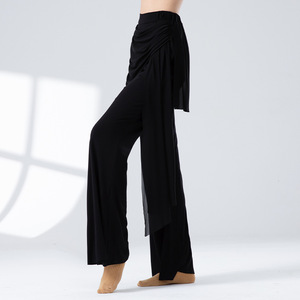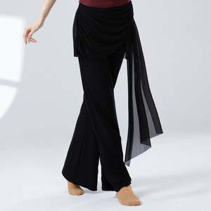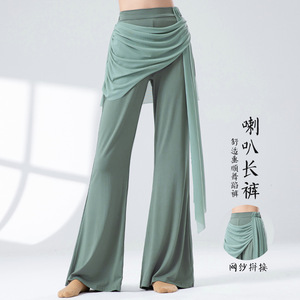 女性用クラシックダンスパンツ、新しいスタイルのエレガントなメッシュマイクロフレア弾性ボディパンツ、カジュアルヨガパンツ、モダンダンス練習服
