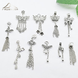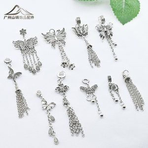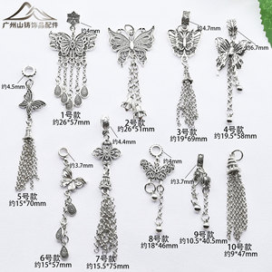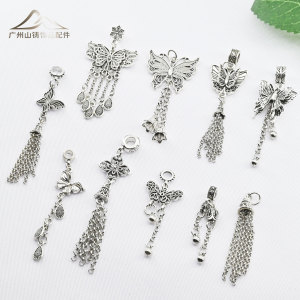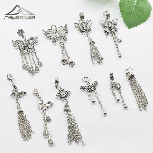 古银藏银流苏民族风吊坠葫芦蝴蝶结莲蓬水晶挂坠古银色手链配件