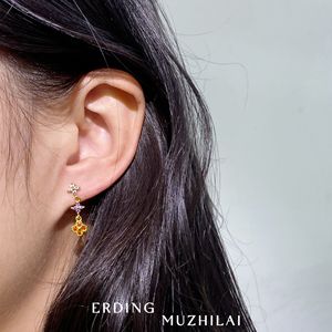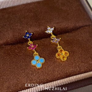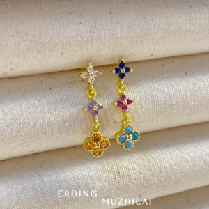 Xiaohongshuの人気のドーパミン四つ葉の花のイヤリング、夏のカラーダイヤモンドとジルコンのイヤリング、気質と高級感、ドロップシッピング