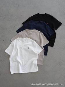 無地のロバ刺繍Tの代替品!ワッフルコットン生地ラウンドネックベーシック万能半袖Tシャツ男女兼用