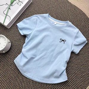 ガールズ Tシャツ ウエストピュア セクシー 半袖 トップス 2025年夏新作 中大型 子供用 インスタイル 万能プリーツ トレンド