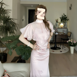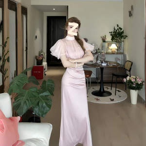 ピンクのサスペンダードレス女性の夏の美しいスカートメッシュブラウスサスペンダースカートスーツロングスカート送料無料