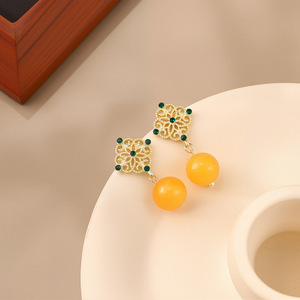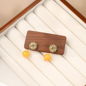 女性用卸売模造瑪瑙イヤリング、古典的な禅イヤリング、レトロな新しい中国風のイヤリング、925 シルバー針古代スタイルのイヤリング