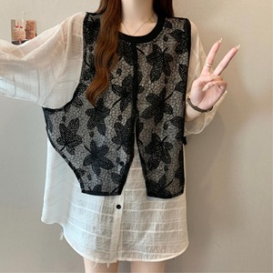 お腹カバー怠惰なスタイルのレースステッチシフォンシャツ女性の夏の少し太ったmm大きいサイズルーズフェイクツーピース半袖シャツ
